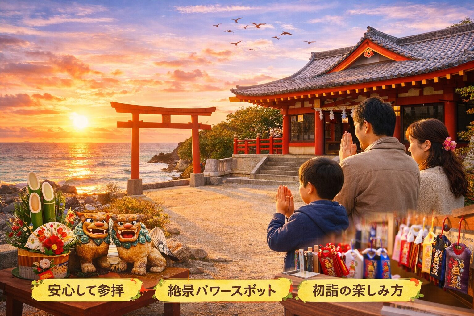 波上宮や沖縄県護国神社などの定番スポットから、普天満宮や成田山福泉寺といった穴場まで、子育て世代にやさしい環境が整っているのも大きな魅力。混雑を避けた時間帯の選び方や、お守りの選び方、家族での参拝マナーまで知っておくことで、より快適で思い出に残る初詣になるはずです。