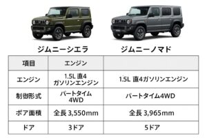 画像付きスペック比較表(シエラ2ドア vs ノマド5ドア)